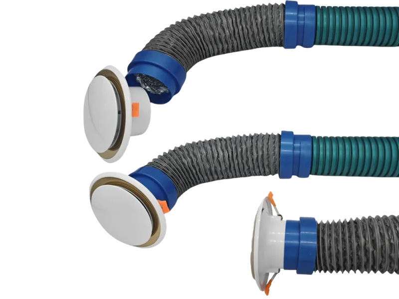 Đầu nối ống gió mềm PE dùng để kết nối ống dẫn khí PE corrugated với miệng gió trong hệ thống thông gió và cấp khí tươi, giúp đảm bảo lưu thông không khí ổn định và kín khí.
